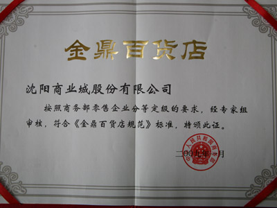 2009年被國家商務(wù)部評為“金鼎級百貨店”
